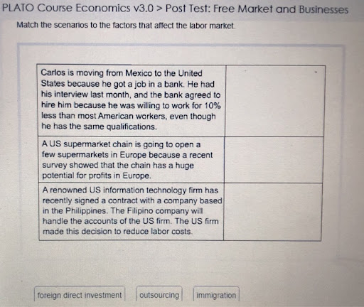 Free market and businesses match the scenarios to the factors that affect the labor market carlos is. Web test marketing is a strategy companies use to check the viability of their new product or a marketing campaign before it is launched in the market on a large scale. Free market and businesses question 15 of 16 instructions:
